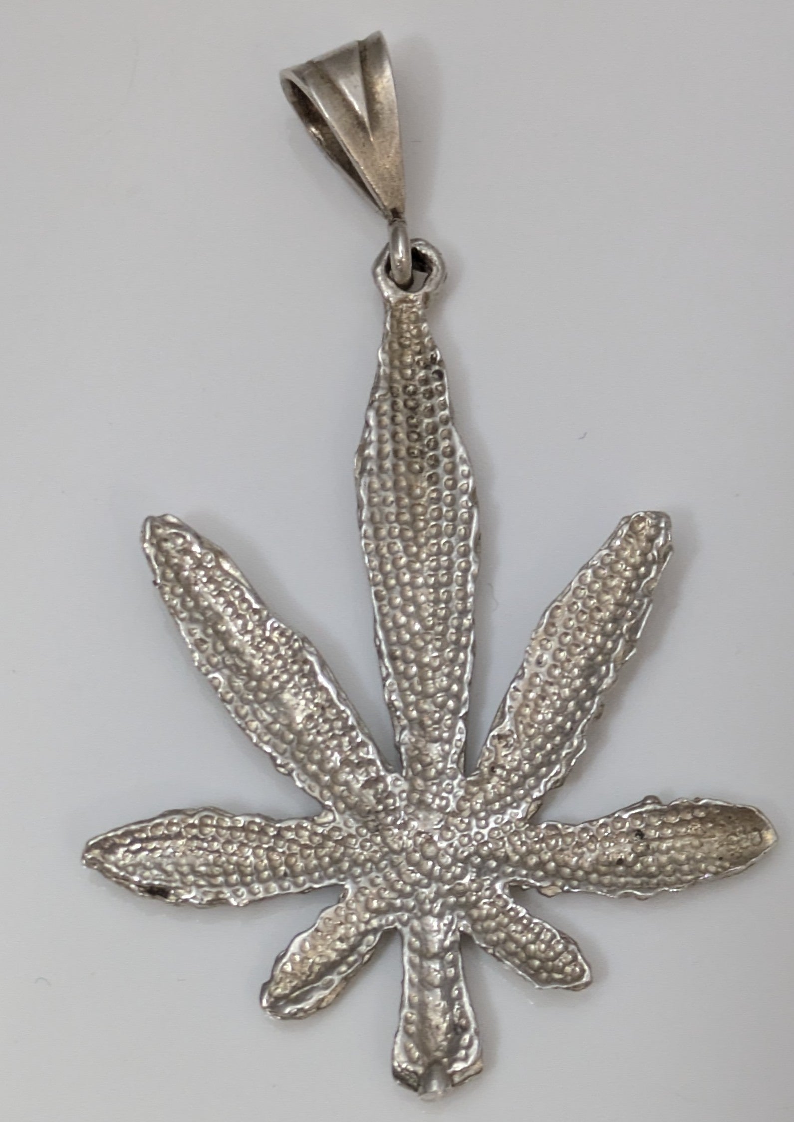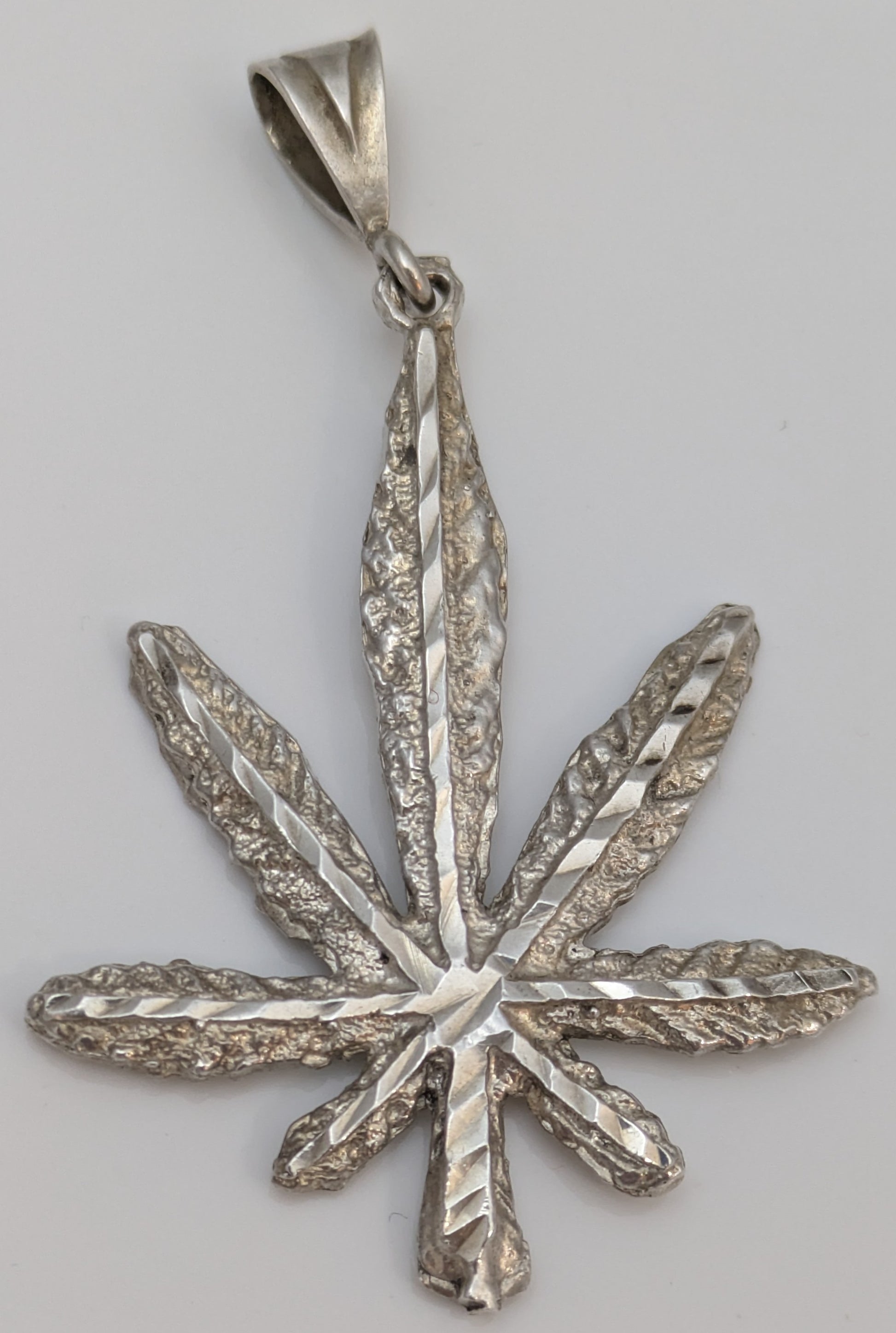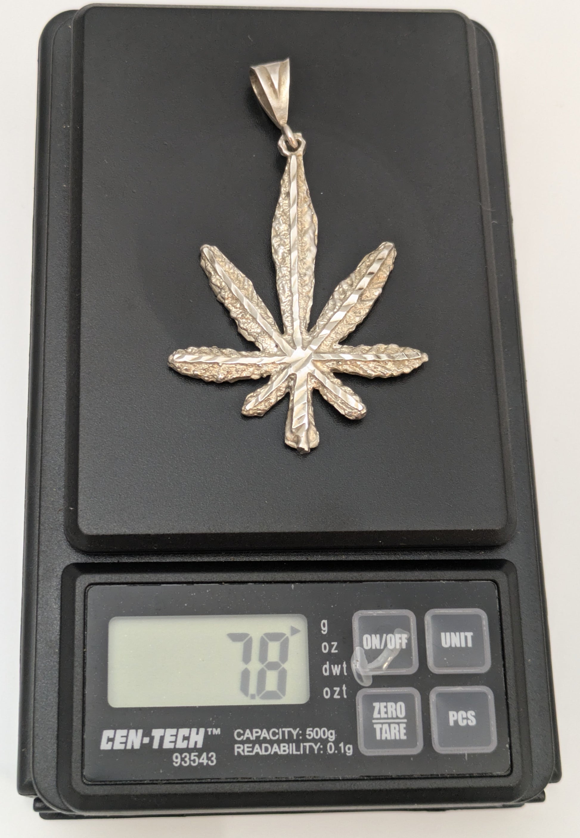 .925 Sterling Silver Marijuana Diamond Cut Pendant / Charm Weed Cannabis Pot