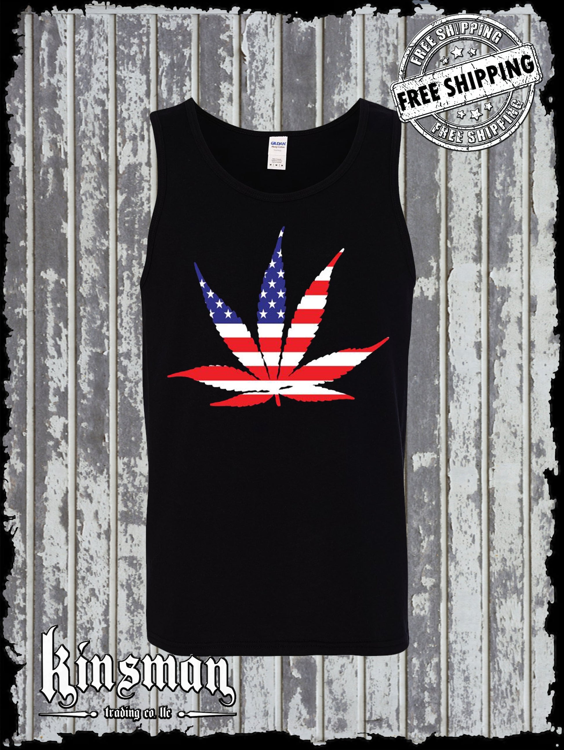 American Flag Pot Leaf Tank Top T-Shirt - USA Legalize Weed 420 Marijuana High Life