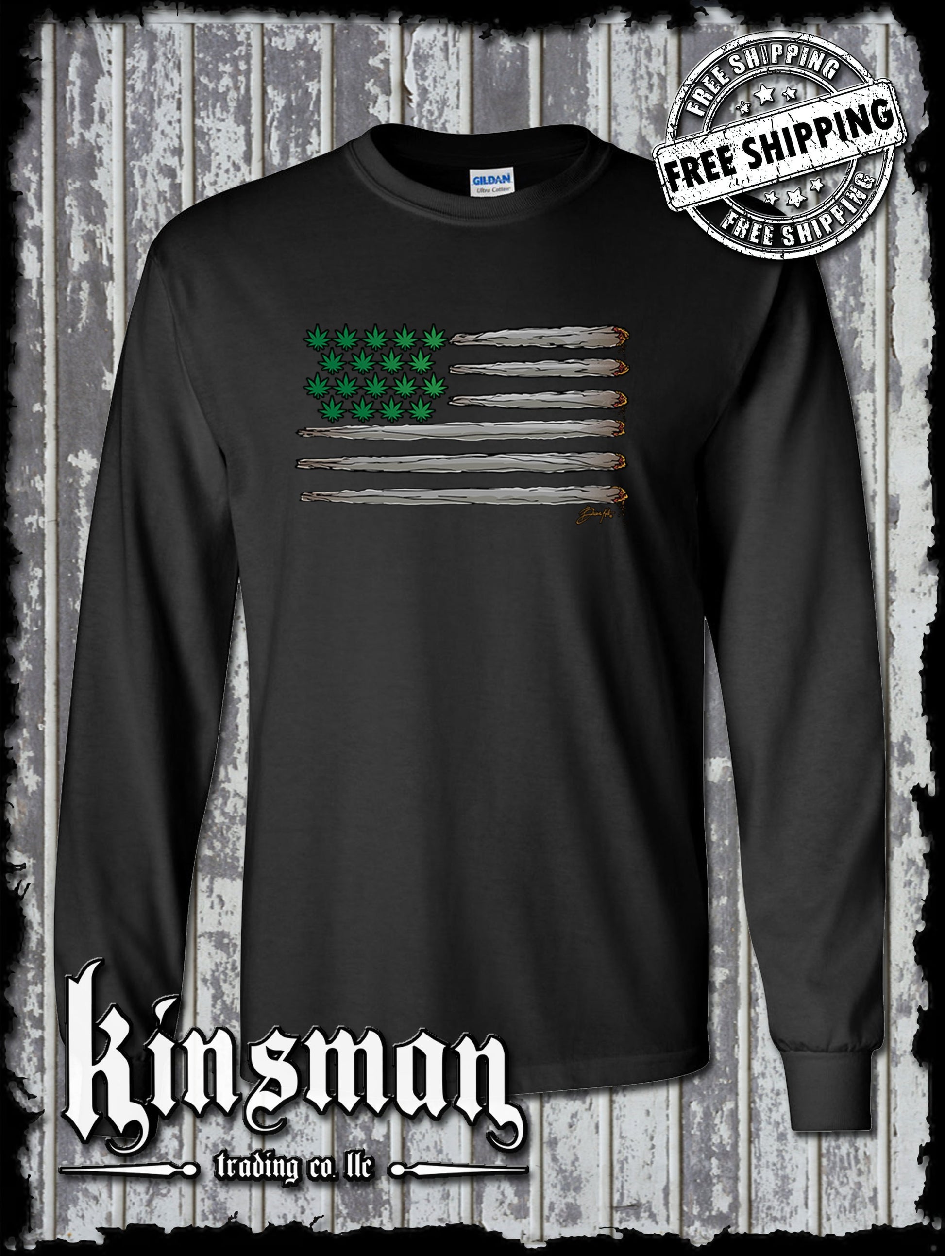 American Joint & Pot Leaf Flag Long Sleeve T-Shirt USA Weed