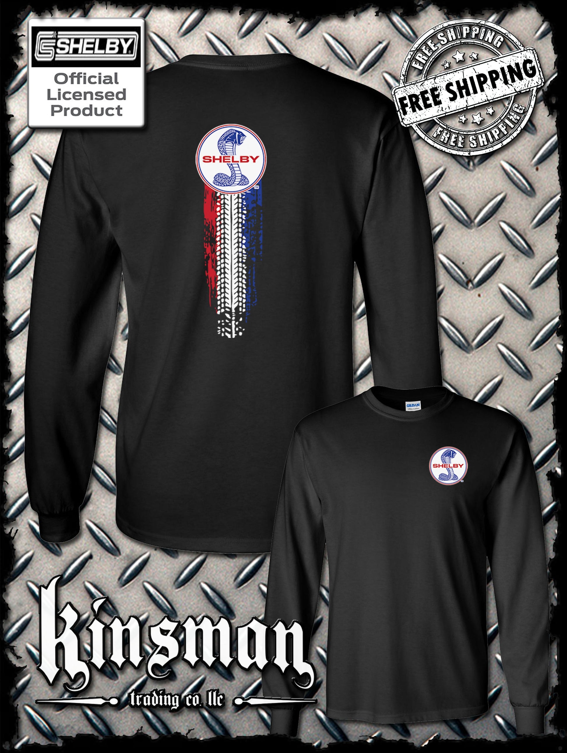 Carroll Shelby Vertical Cobra Red White Blue Logo 2-Sided Long Sleeve T-Shirt