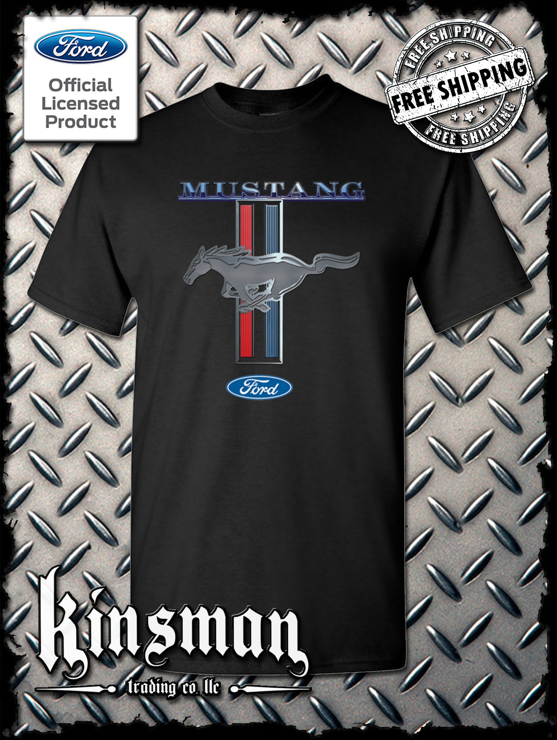 Ford Mustang Red White & Blue Stripe Logo T-Shirt Official Licensed Product