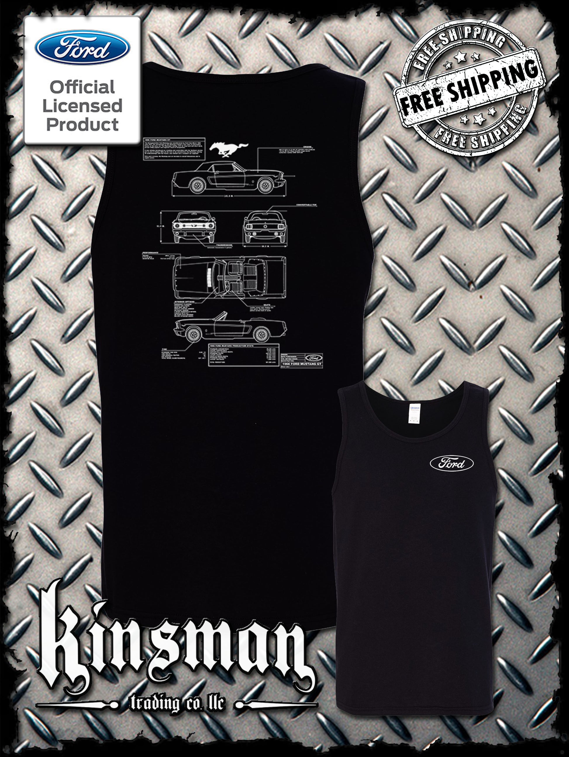 Ford Mustang Blueprint 2-Sided Tank Top T-Shirt - Official Licensed Product