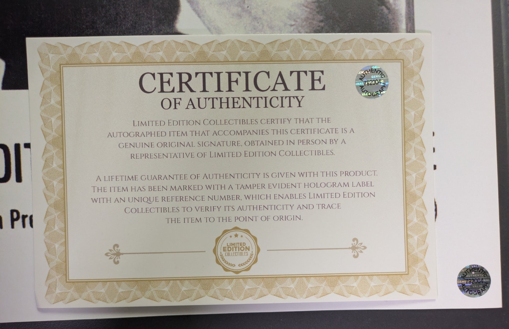 Comes with a COA from a private company who obtained the signature at a convention. The photo of George is a digital only copy that was provided by the people who got the autograph.