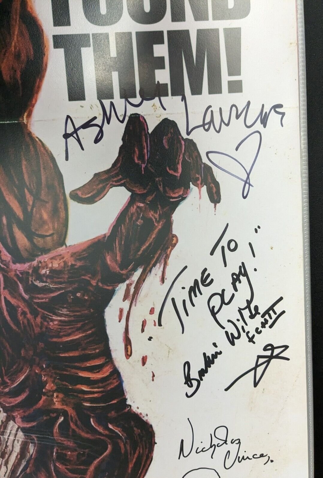 Item was signed in person at Motor City Nightmares horror convention in 2019. The poster was custom printed for the convention and is still in new condition with minor handling wear. The fold lines and distress are part of the artwork.