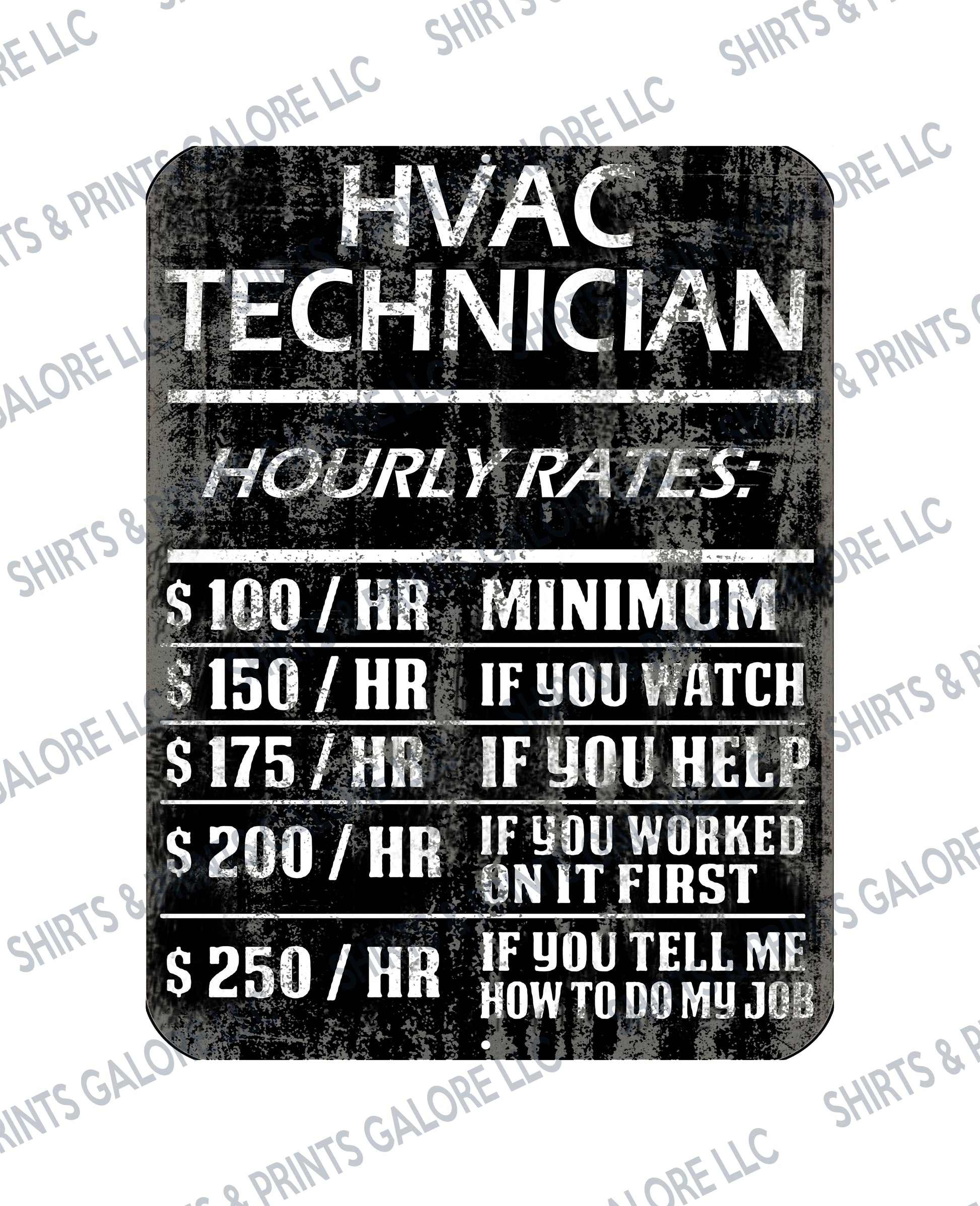 HVAC Technician Hourly Rate Funny Metal Sign - Heating & Cooling