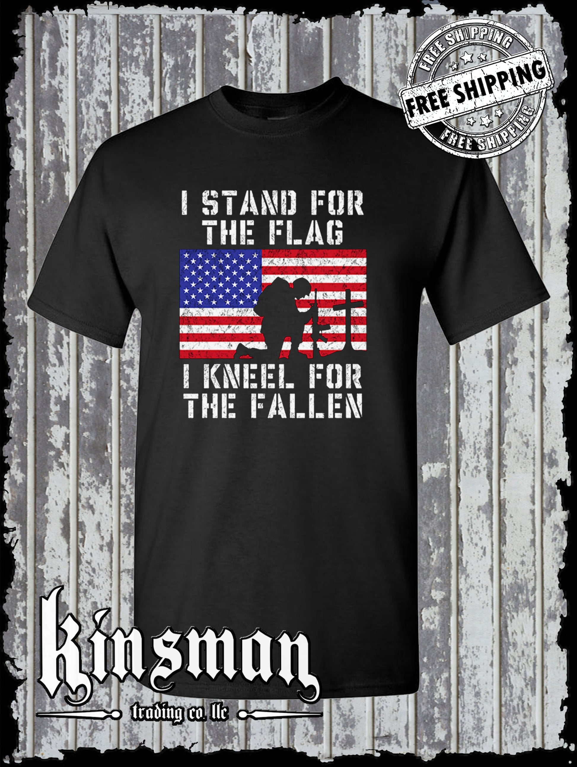 I Stand for the Flag I Kneel for the Fallen T Shirt American Flag Cross USA