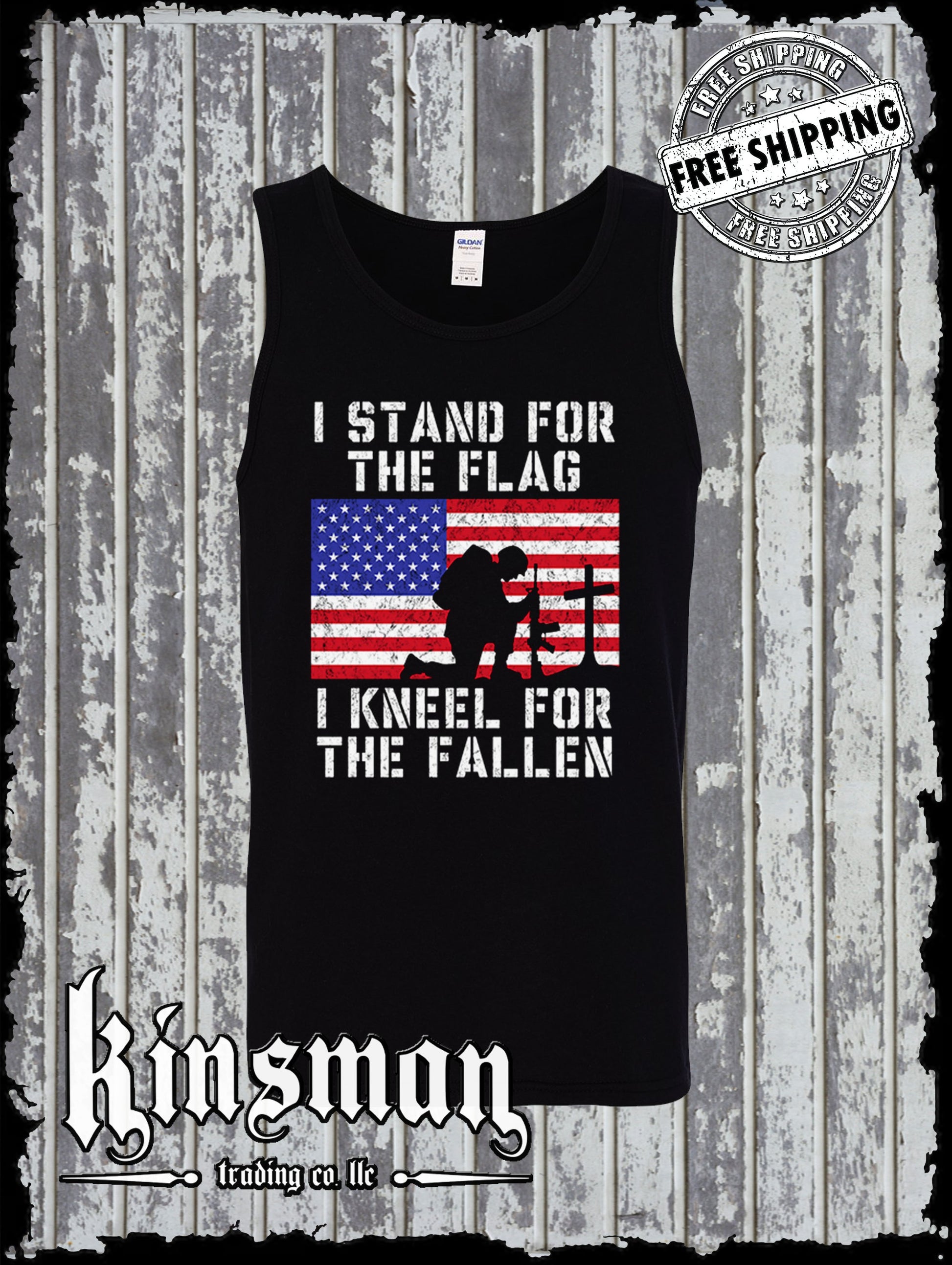I Stand for the Flag I Kneel for the Fallen Tank Top T Shirt American Flag Cross USA