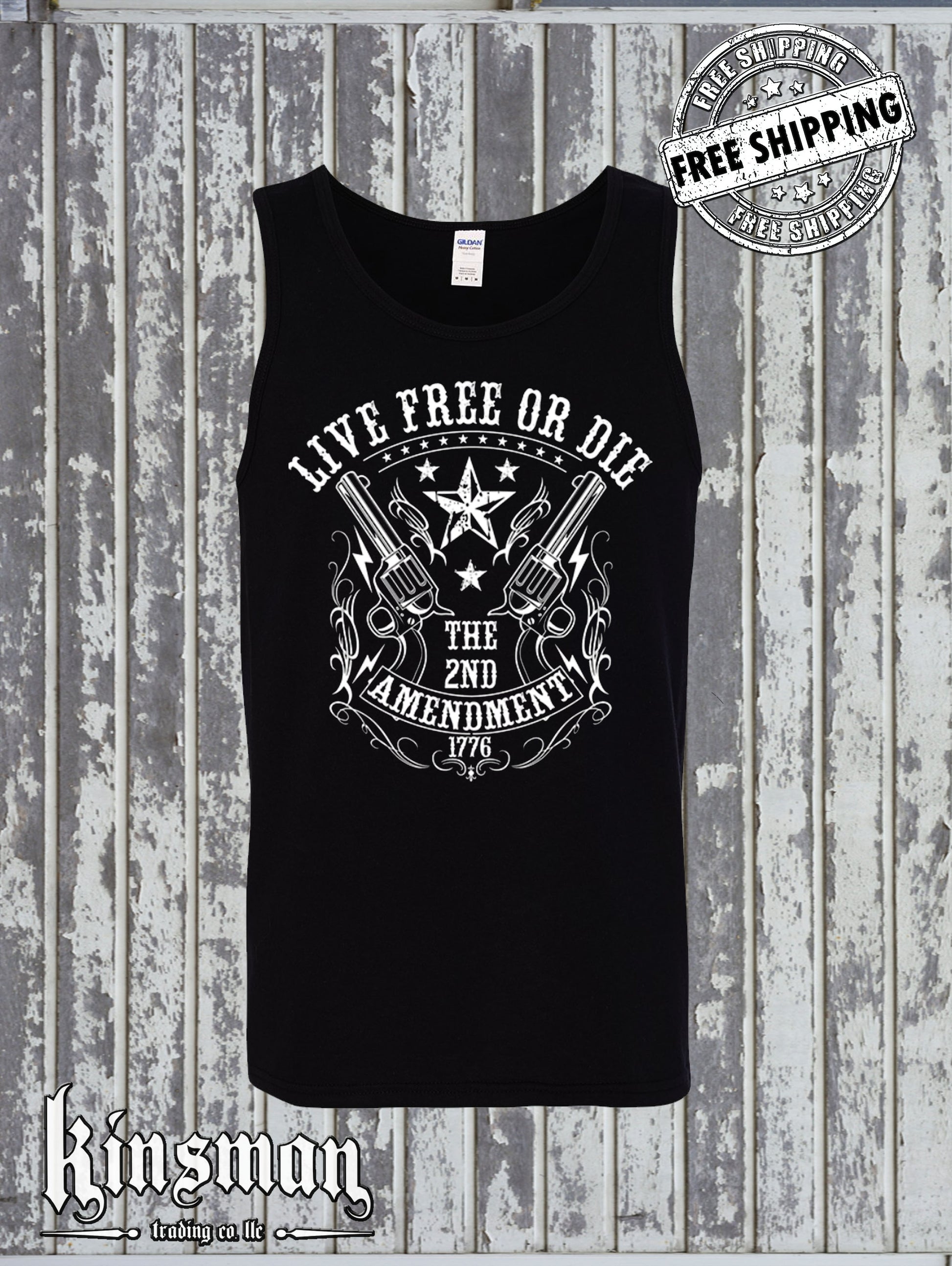 Live FREE or DIE 2nd Amendment Tank Top T-Shirt - Gun Rights .45 Revolvers USA