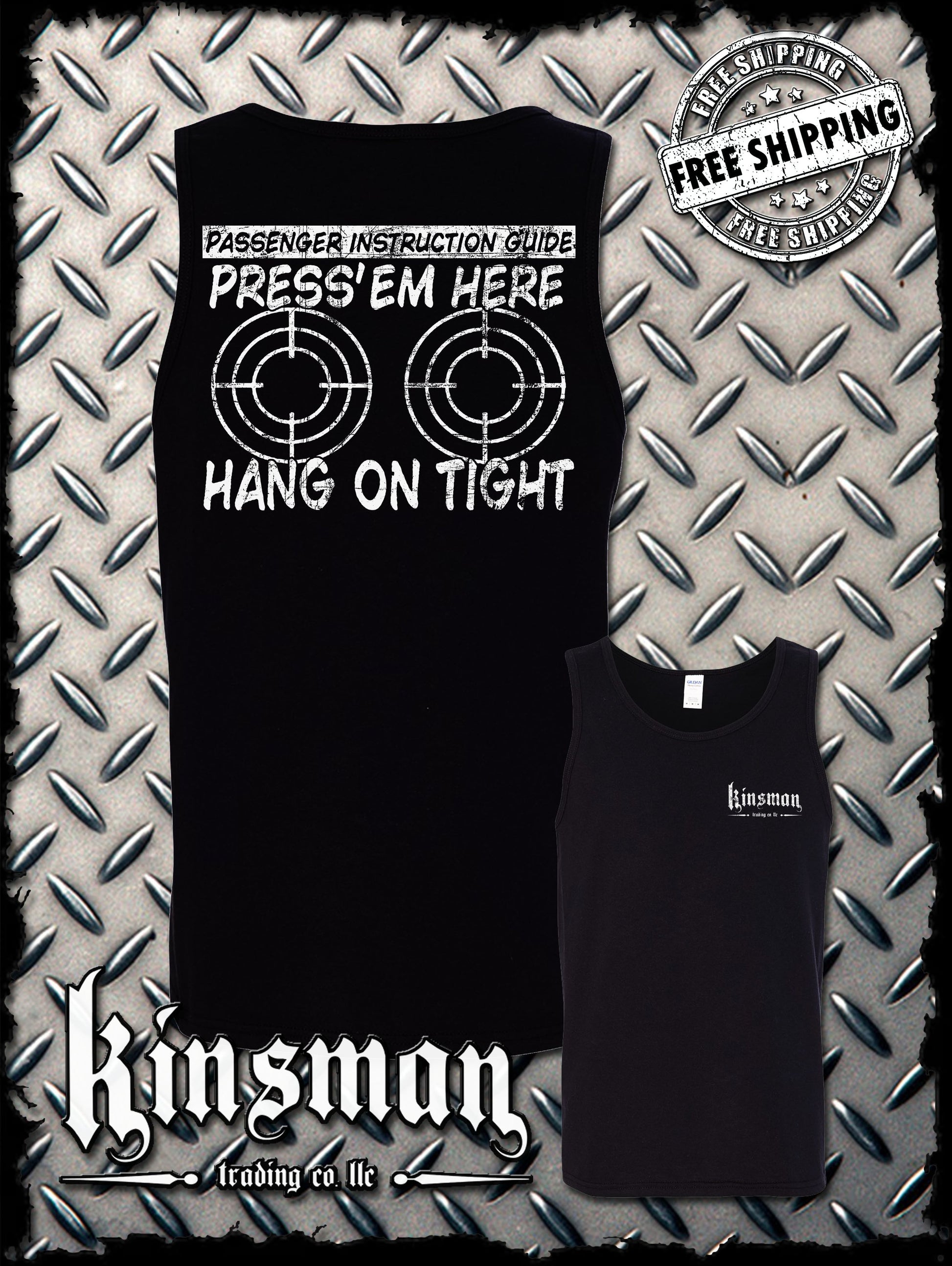 PRESS 'EM HERE Passenger Instruction Guide BIKER Tank Top T-Shirt