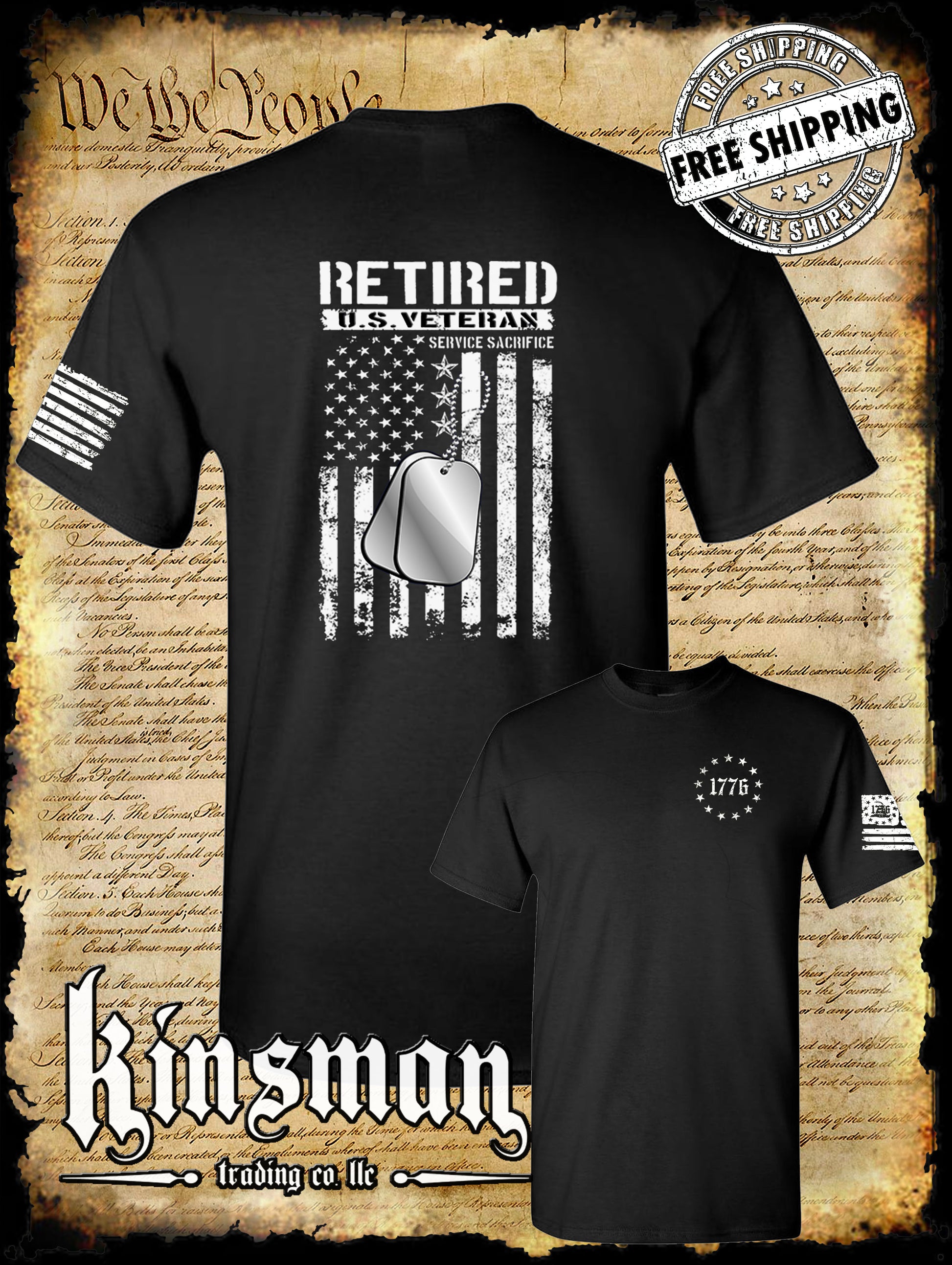 Retired US Veteran 2-Sided T-Shirt United States Military Army Marines USA