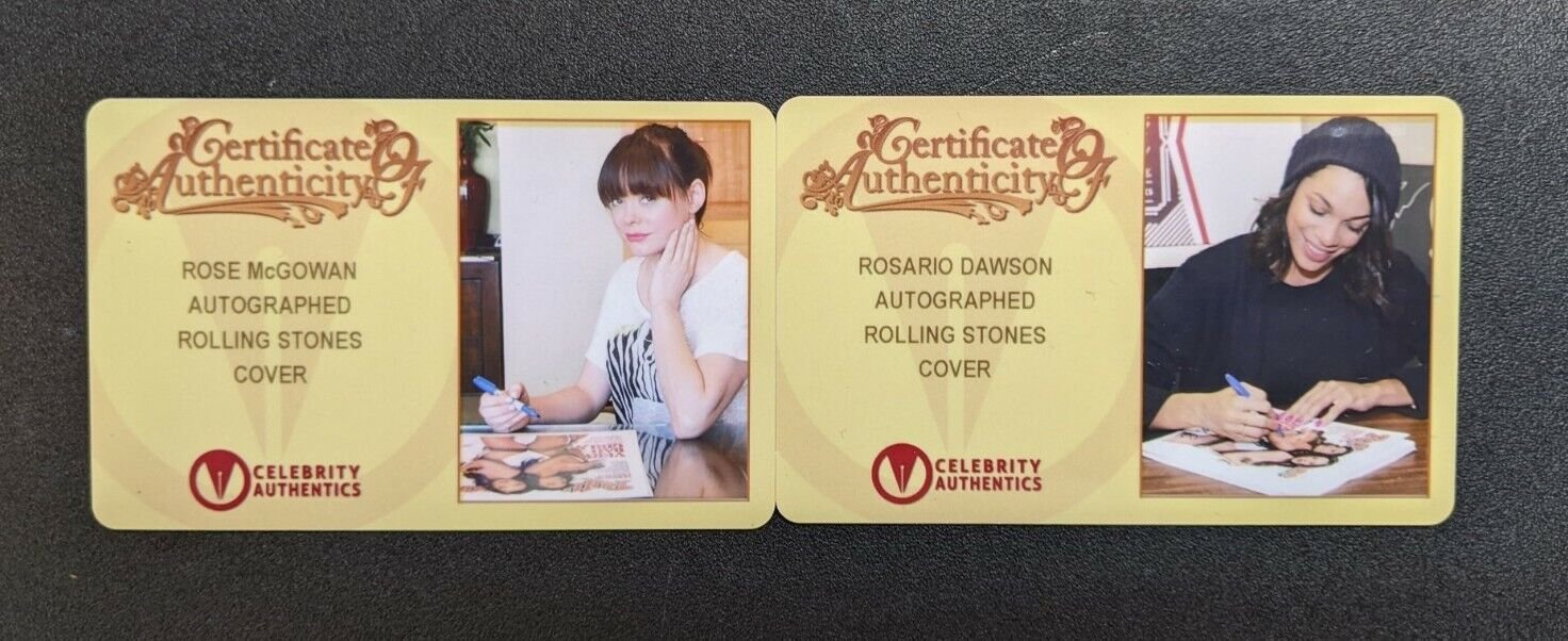 Rose McGowan and Rosario Dawson Autographed 11x13 Rolling Stone Magazine Cover Poster.