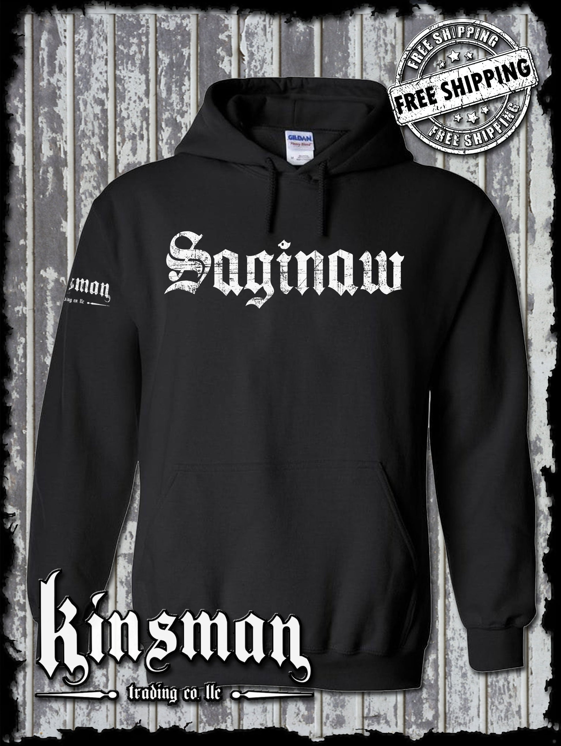 Saginaw Old English Hoodie / Sweatshirt Souvenir Gift Mid-Michigan