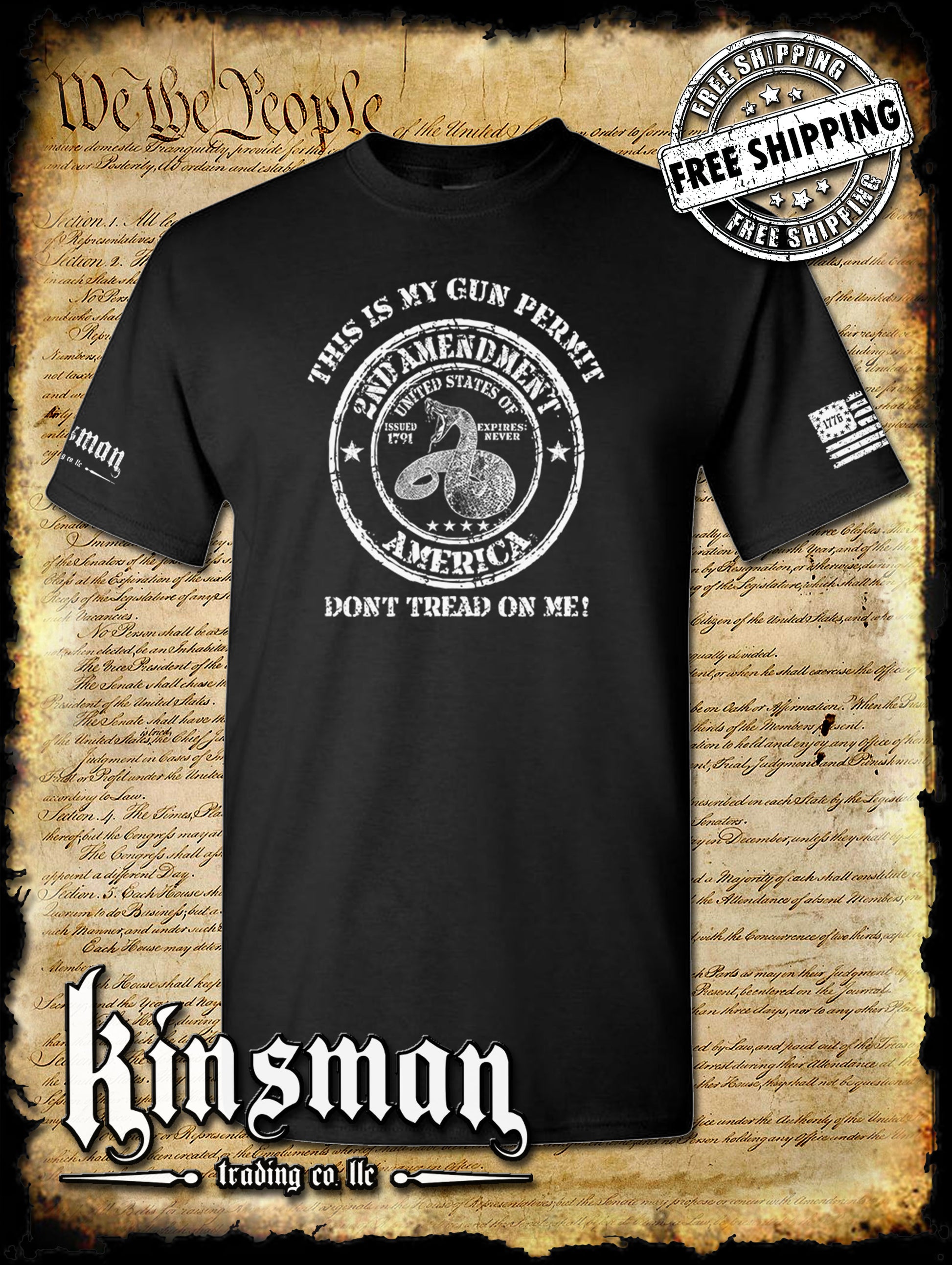This Is My GUN PERMIT Don't Tread On Me T-Shirt 2nd Amendment Rattlesnake 2A USA