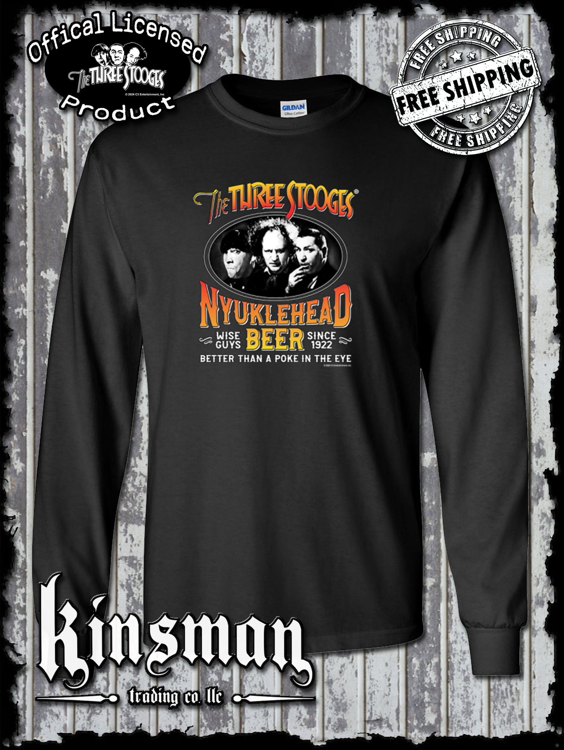 Three Stooges Nyuklehead Beer Label Long Sleeve T-Shirt