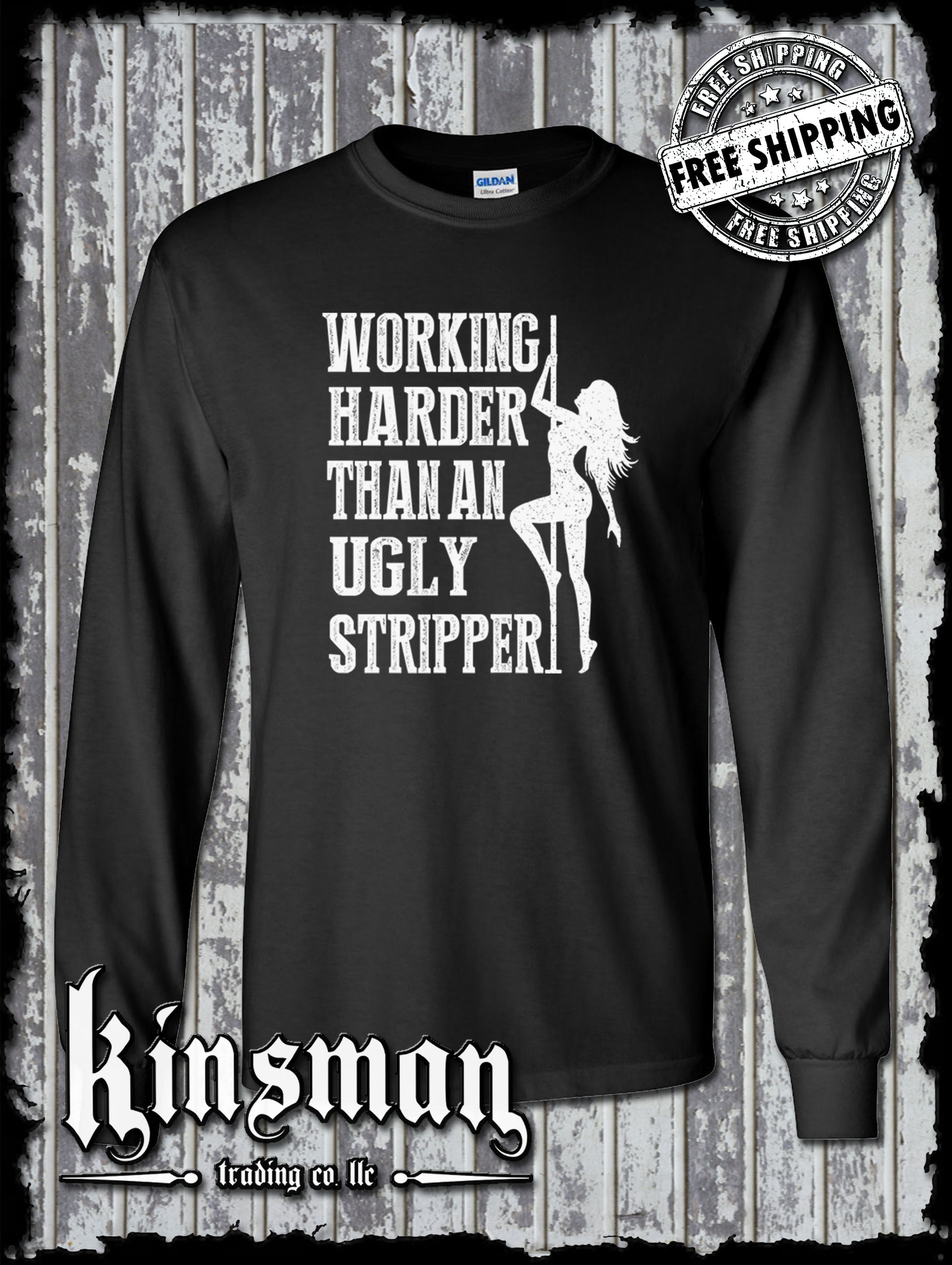 Working Harder Than an Ugly Stripper Long Sleeve T-Shirt - Funny Adult Humor Tee